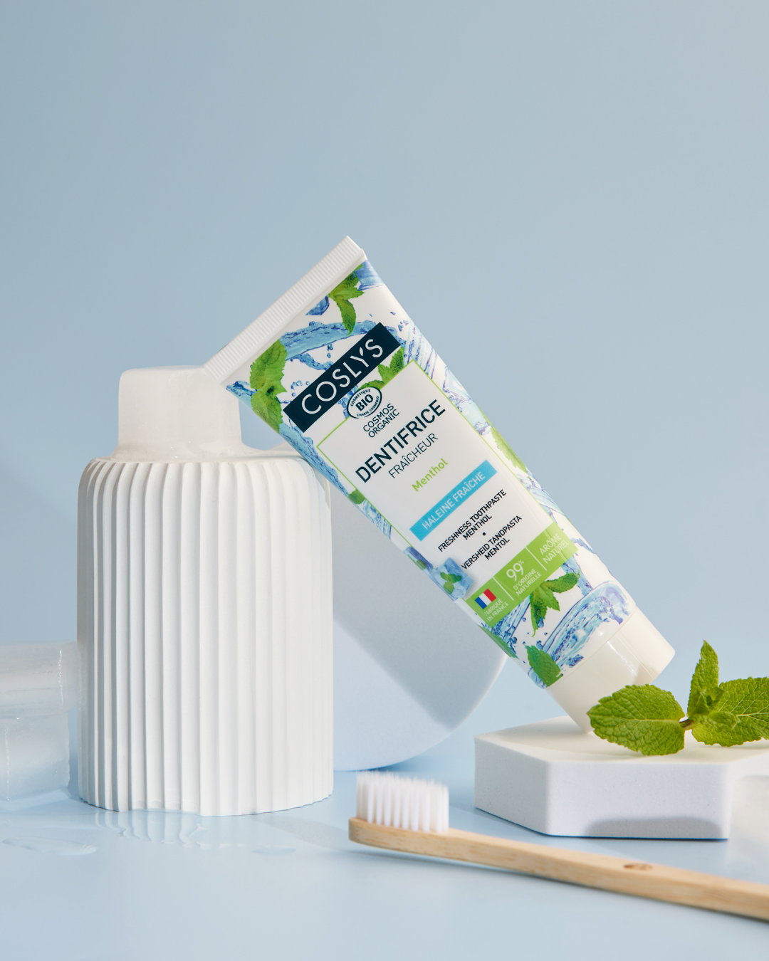 aqua (water), glycerin, calcium carbonate, cellulose gum, aloe barbadensis leaf juice powder*, xanthan gum, carrageenan, mentha piperita (peppermint) oil*,menthol, sodium coco-sulfate, stevia rebaudiana extract, alcohol**, coconut alcohol, sodium sulfate, sodium benzoate.